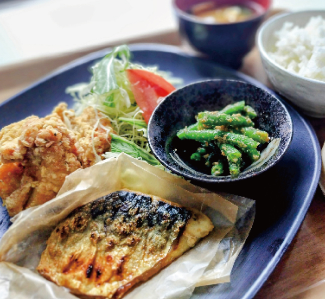 サバを炭火で焼くというこだわりよう。唐揚げもついてなんともお得なランチです。