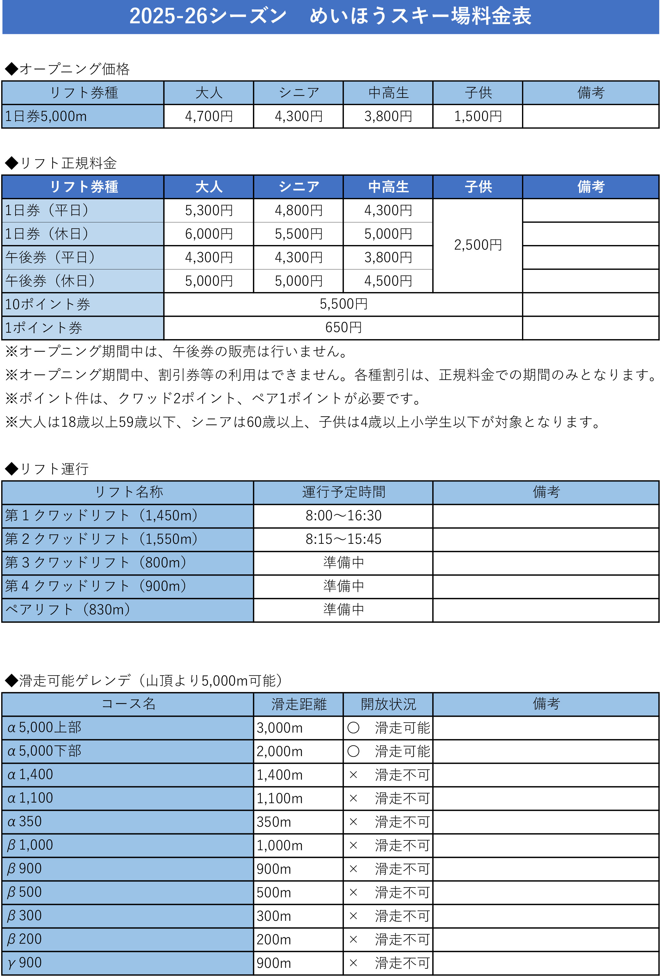 ※天候等により内容が変更となる場合がございます。予めご了承ください。